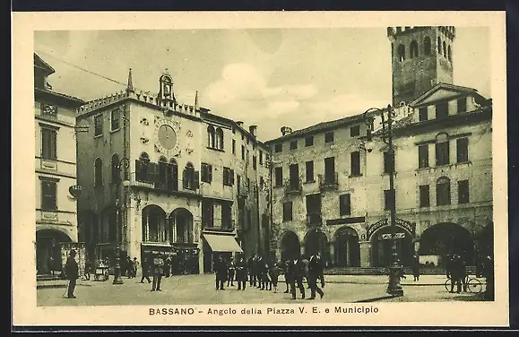 AK Bassano del Grappa, Angolo della Piazza V. E. e Municipio