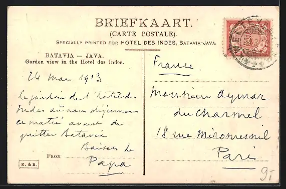 AK Batavia-Java, Garden view in the Hotel des Indes