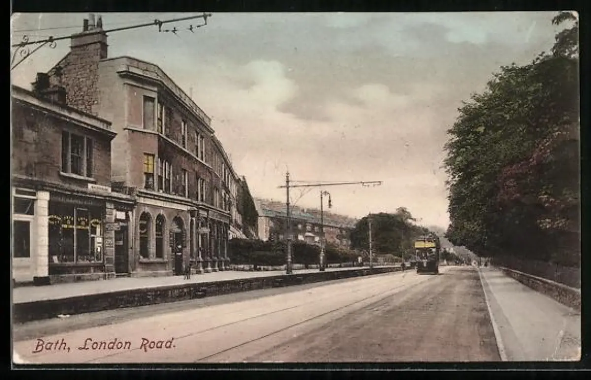 AK Bath, London Road, Strassenbahn