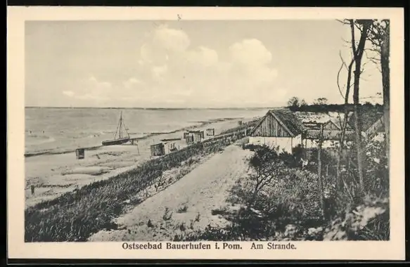 AK Bauerhufen, Am Strande mit Segelboot und Strandkörben