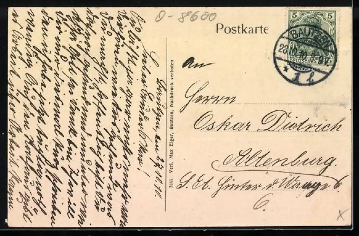 alte Ansichtskarte, gelaufen 1910, guter Zustand
