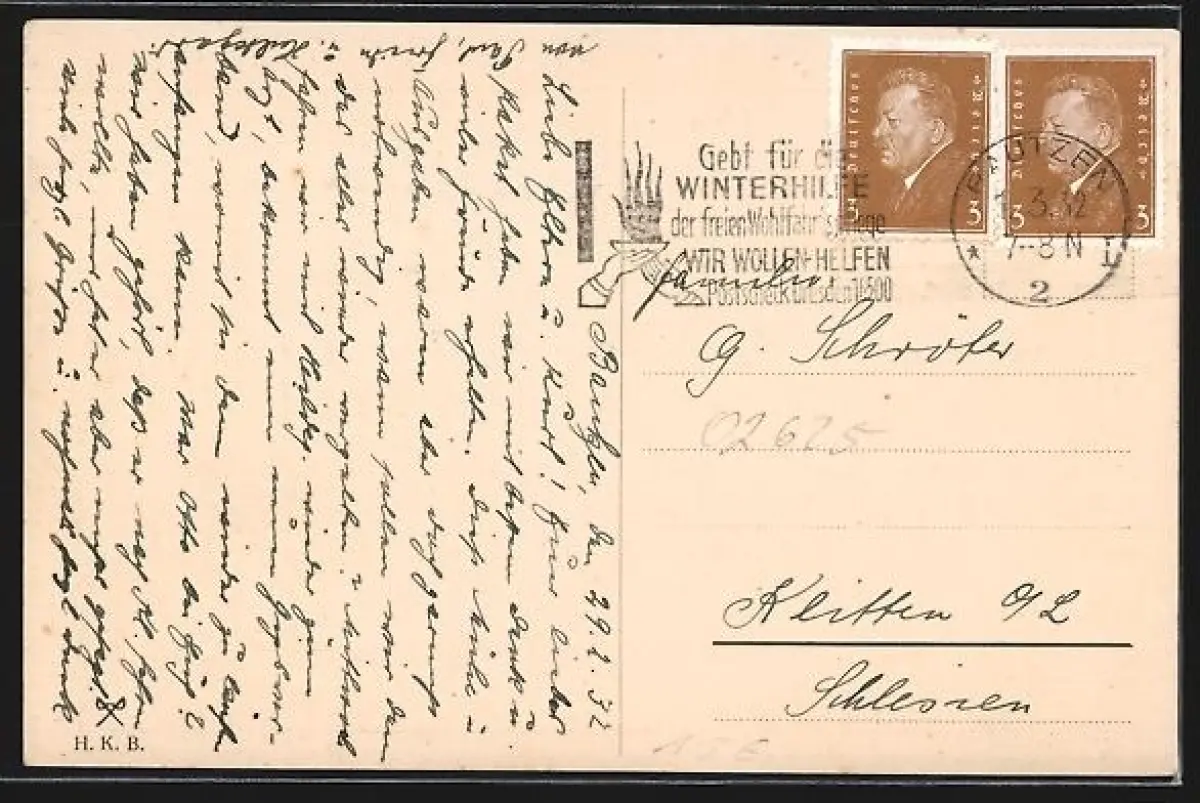 alte Ansichtskarte, gelaufen 1932, kl. Abriebspur oben li., guter Zustand