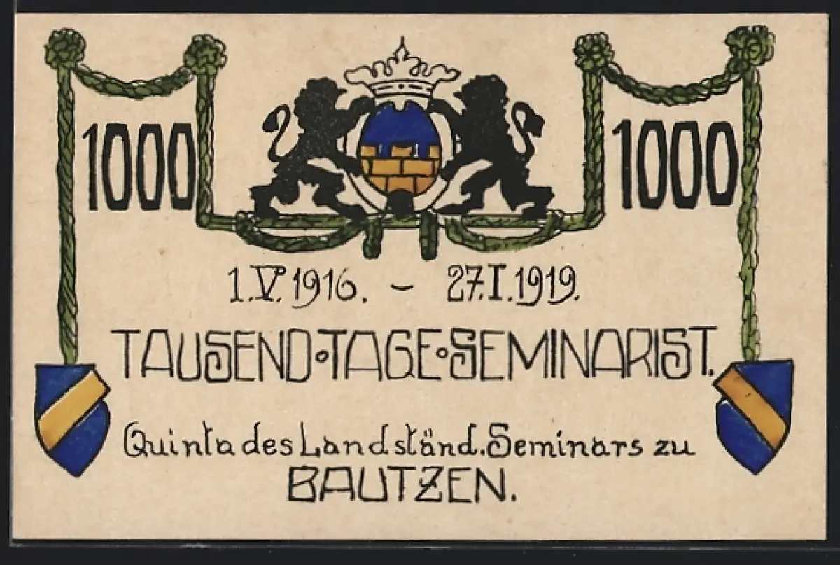 AK Bautzen, Tausend-Tage-Seminarist 1916-1919, Quinta des Landständ. Seminars zu Bautzen
