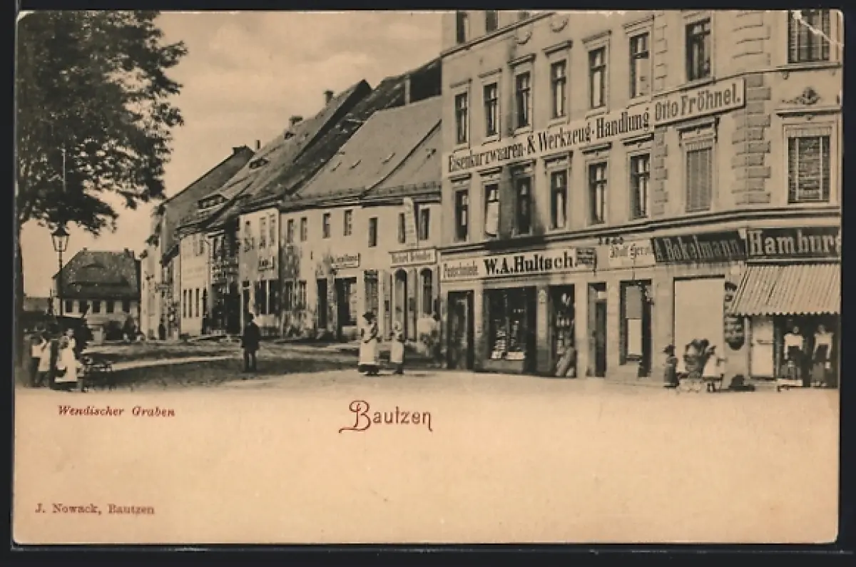 AK Bautzen, Wendischer Graben mit Eisenkurzwaren- und Werkzeug-Handlung