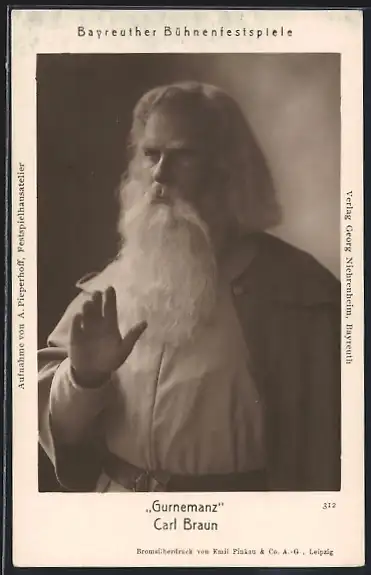 AK Bayreuth, Festspielhaus, Bühnenszene mit Gurnemanz (Carl Braun)