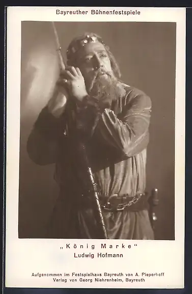 AK Bayreuth, Festspielhaus, Bühnenszene mit König Marke (Ludwig Hofmann)