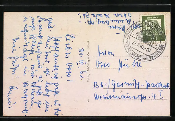 alte Ansichtskarte, gelaufen 1961, Eckknick links oben, guter Zustand