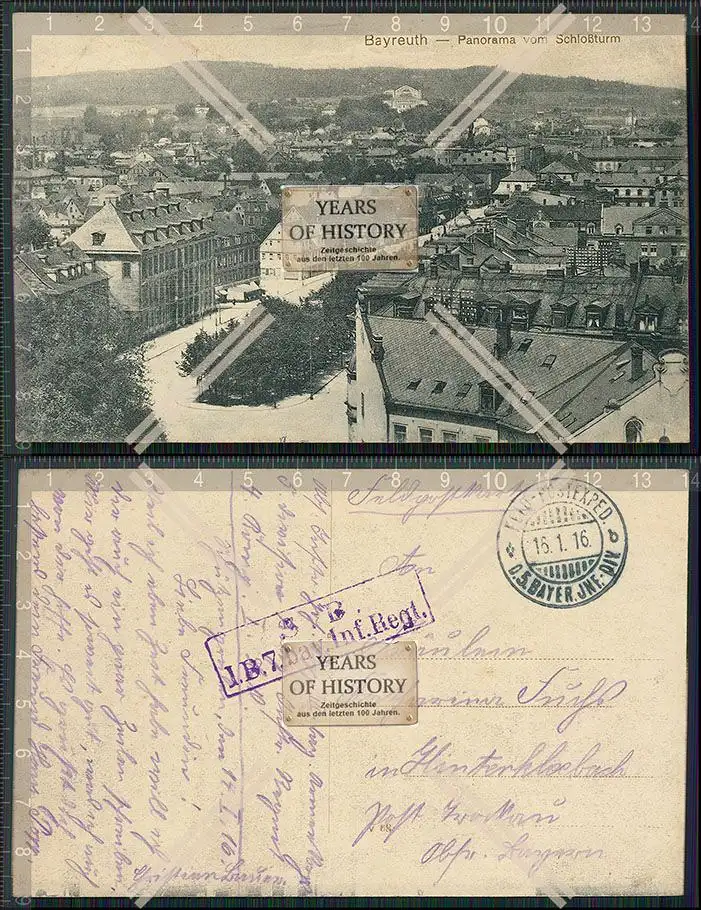 AK Bayreuth Panorama vom Schlossturm 1916 Feldpost bayrisches Infanterie Regiment gelaufen M2024-02-20-123AK Bayreuth Panorama vom Schlossturm 1916 Feldpost bayrisches Infanterie Regiment gelaufen