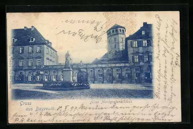 AK Bayreuth i. B., Denkmal vor dem Alten Markgrafenschloss
