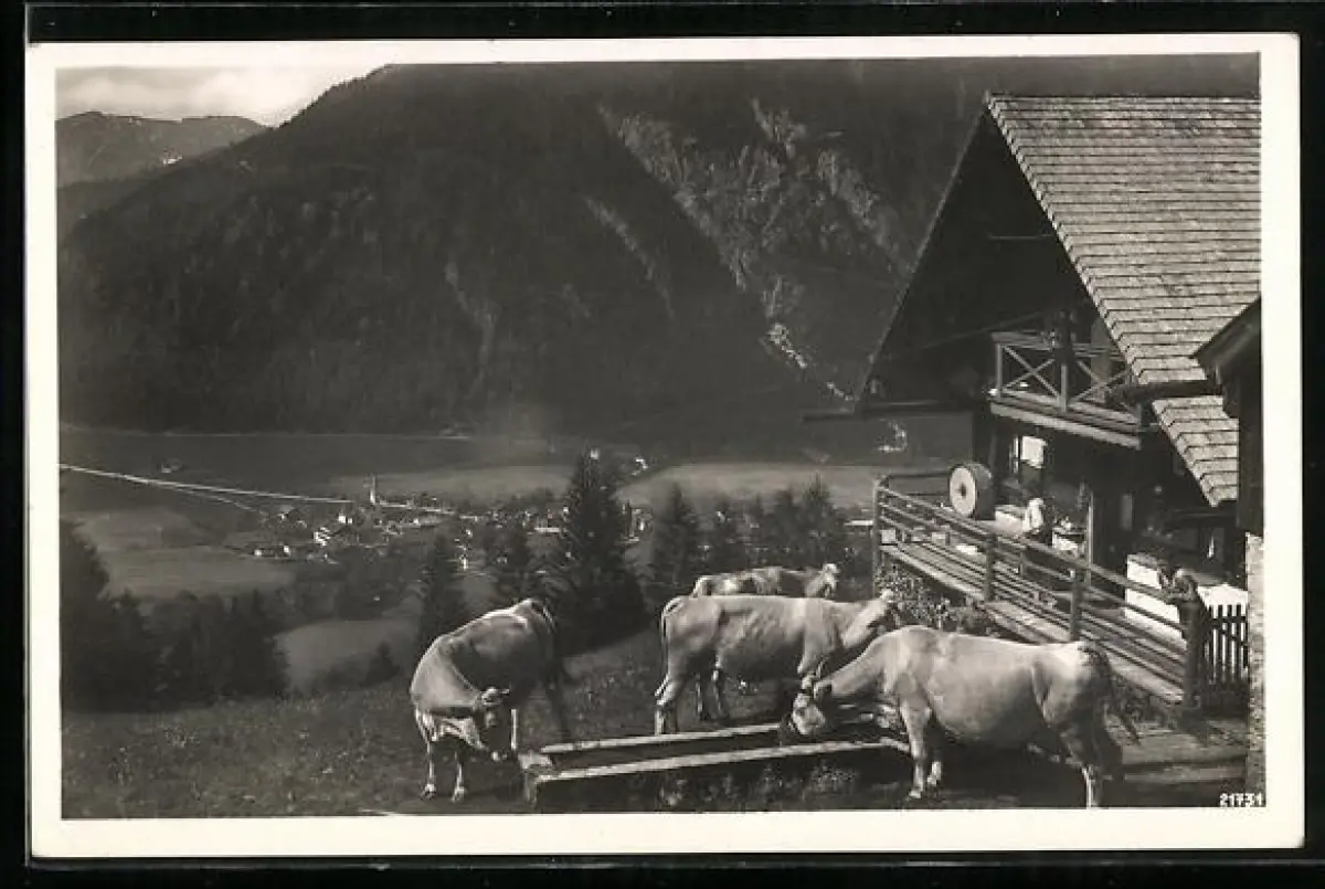AK Bayrischzell, Zellerniederalm, Gasthof, Kühe, Ortsblick