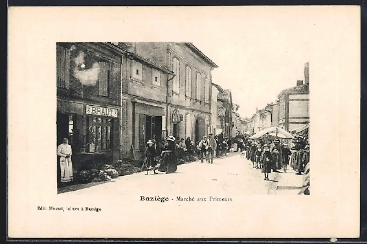 AK Baziège, Marché aux Primeurs animée avec passants et étals de rue