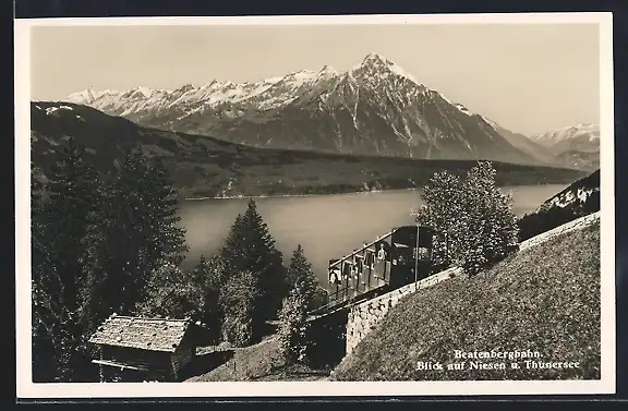 AK Beatenberg, Beatenbergbahn mit Blick auf Thunersee