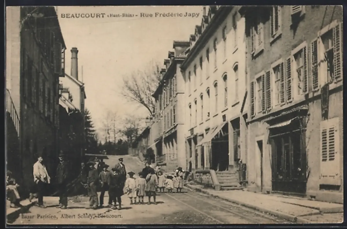 AK Beaucourt /Haut-Rhin, Rue Frédéric Japy avec habitants devant le Bazar Parisien