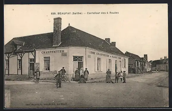 AK Beaufay, Carrefour des 4 Routes avec charpentiers et habitants