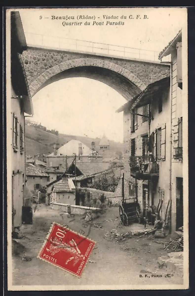 AK Beaujeu /Rhône, Viaduc du C. F. B., Quartier du Pont Paradis
