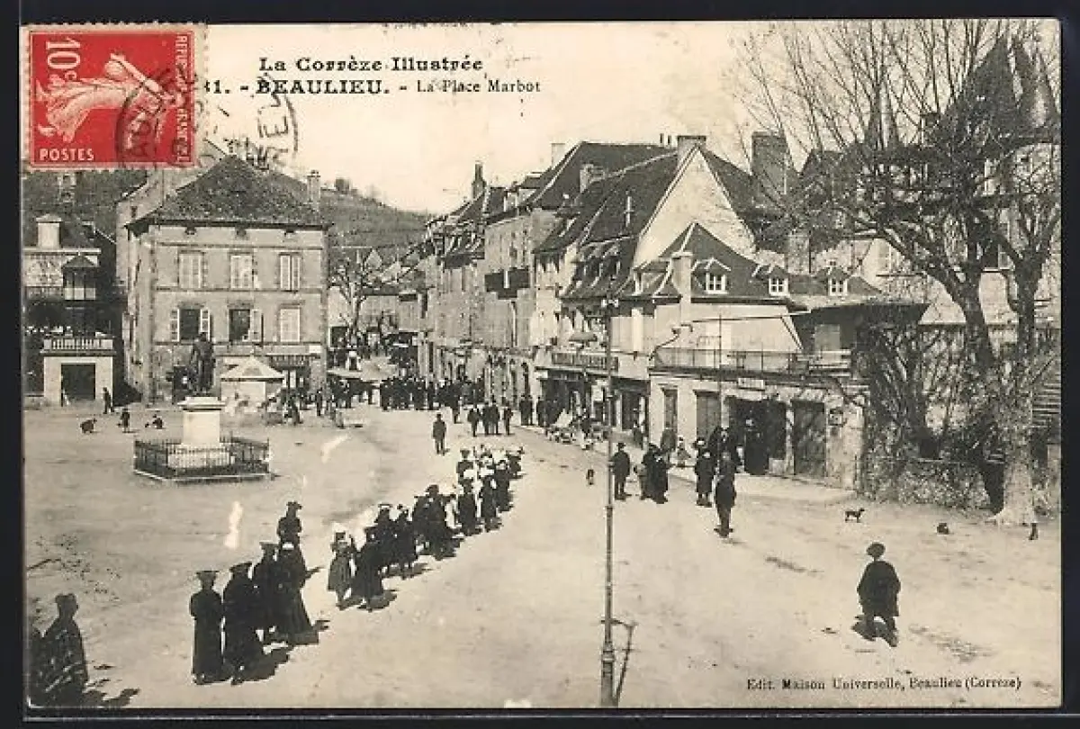 AK Beaulieu /Corrèze, La Place Marbot animée avec habitants et bâtiments historiques