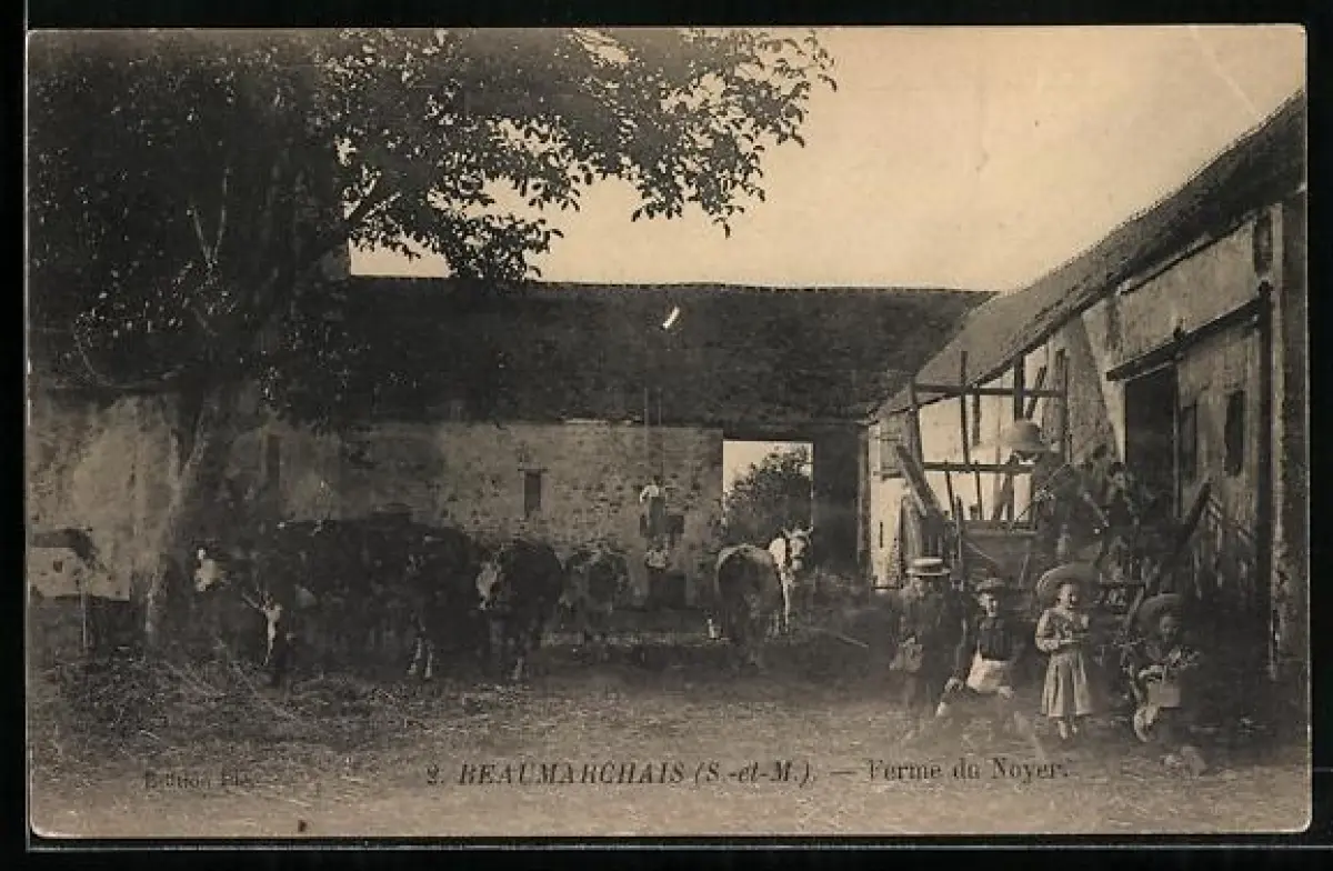 AK Beaumarchais /S.-et-M., Ferme du Noyer avec enfants et animaux dans la cour