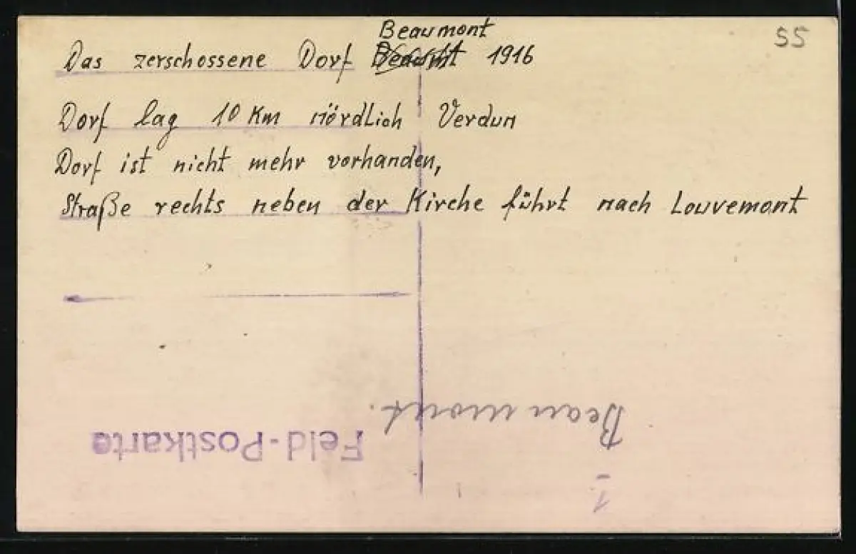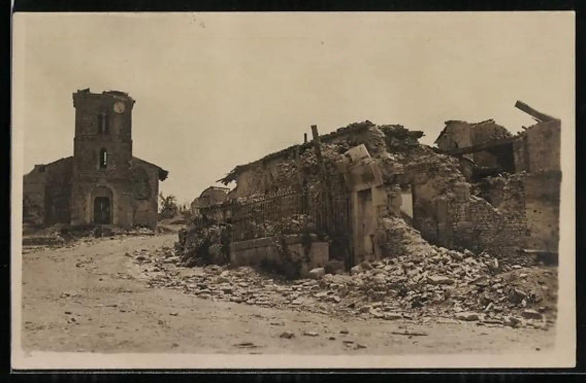 AK Beaumont, Village détruit pendant la guerre avec église en ruines, 1916