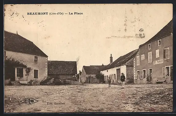 AK Beaumont, la place avec bâtiments et bicyclette devant une maison