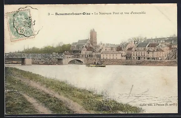 AK Beaumont-sur-Oise, Le Nouveau Pont et vue d`ensemble