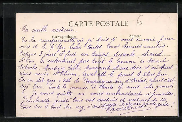 Personenbezogene Daten auf der Rückseite der Karte wurden durch blauen Textmarker unkenntlich gemacht. Die blauen Stellen sind auf die Vorderseite durchgeweicht und wirken sich negativ auf das Postkartenfoto aus