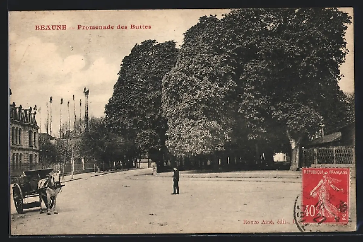 AK Beaune, Promenade des Buttes avec calèche et arbres majestueux