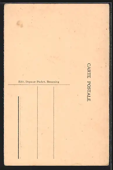 Personenbezogene Daten auf der Rückseite der Karte wurden durch blauen Textmarker unkenntlich gemacht. Die blauen Stellen sind auf die Vorderseite durchgeweicht und wirken sich negativ auf das Postkartenfoto aus