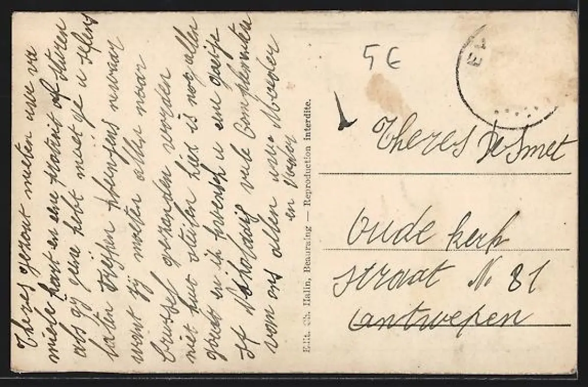 alte Ansichtskarte, gelaufen, Briefmarke entfernt, guter Zustand