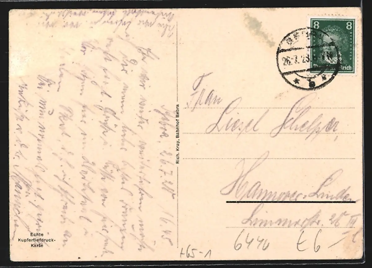 alte Ansichtskarte, gelaufen 1923, Eckknicke re. u. li., Einriss oben rechts, Abriebspur oben rechts