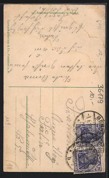 alte Ansichtskarte, gelaufen, Abriebspur li. oben, Eckknick re. oben