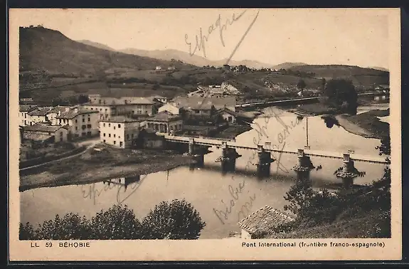 AK Béhobie, Pont International, frontière franco-espagnole, über Fluss mit umliegenden Gebäuden