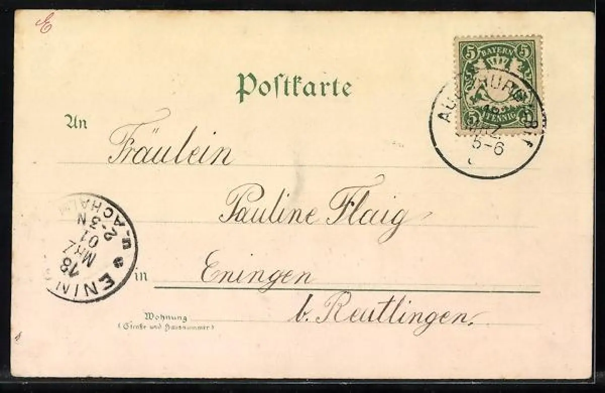 alte Ansichtskarte, gelaufen 1901, Eckknick re. unten, Einriss re. unten, guter Zustand