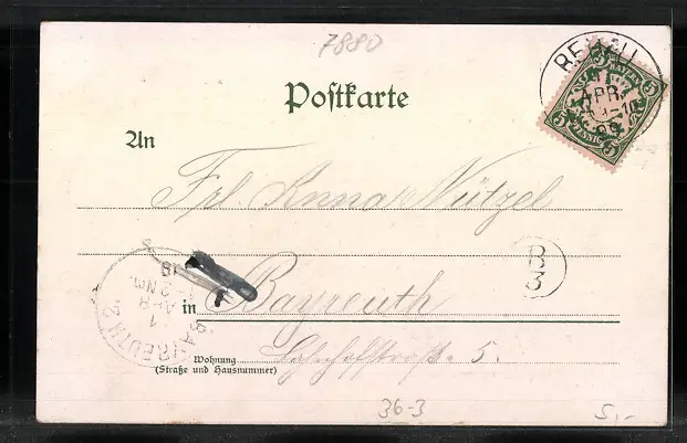 alte Ansichtskarte, gelaufen 1899, guter Zustand
