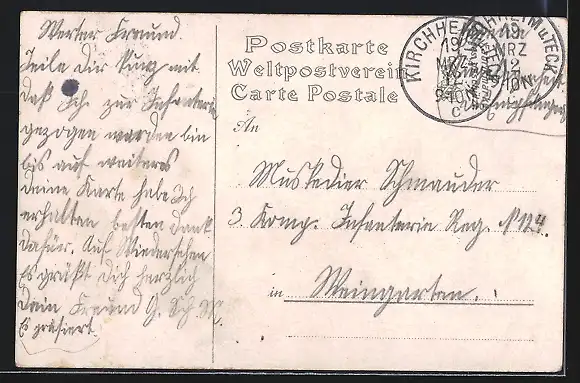 gelaufen 1912, Eckknick oben li., guter Zustand