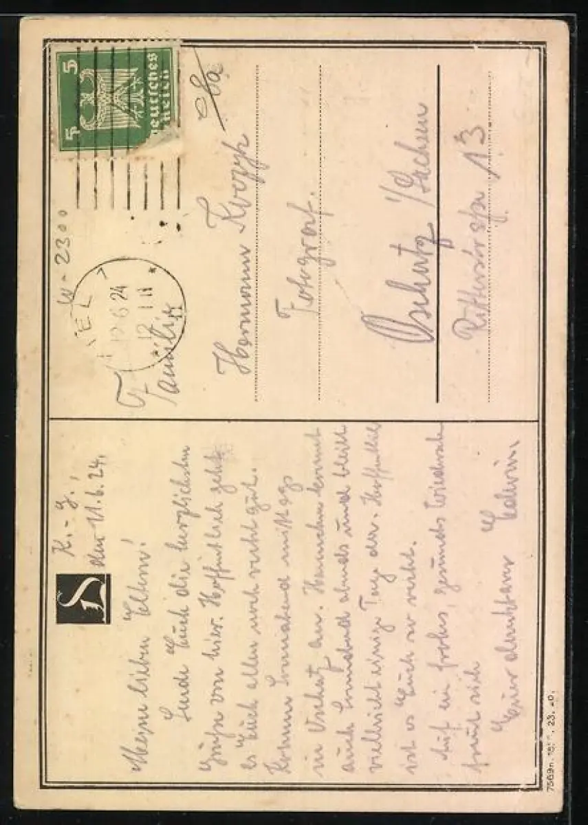 alte Ansichtskarte, gelaufen 1924, Eckknicke rechts, guter Zustand