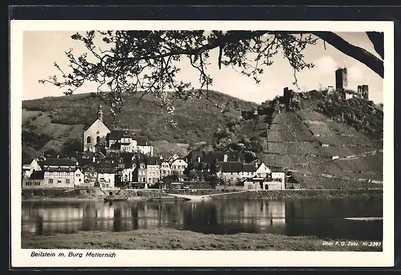AK Beilstein /Mosel, Flusspartie mit Burg Metternich