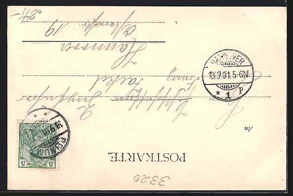 alte Ansichtskarte, gelaufen 1901, guter Zustand