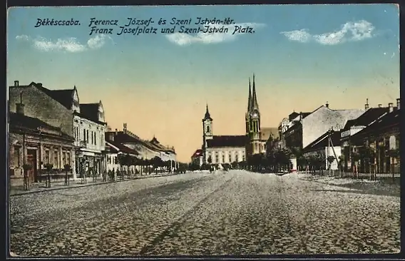 AK Bekescsaba, Ferencz Jozsef- es Szent Istvan-ter, Franz Josefplatz & Szent-Istvan Platz