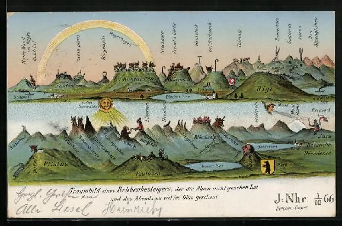 AK Belchen, Alpenpanorama mit Regenbogen, Berggesichter
