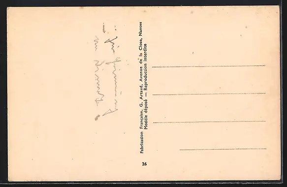 Personenbezogene Daten auf der Rückseite der Karte wurden durch blauen Textmarker unkenntlich gemacht. Die blauen Stellen sind auf die Vorderseite durchgeweicht und wirken sich negativ auf das Postkartenfoto aus