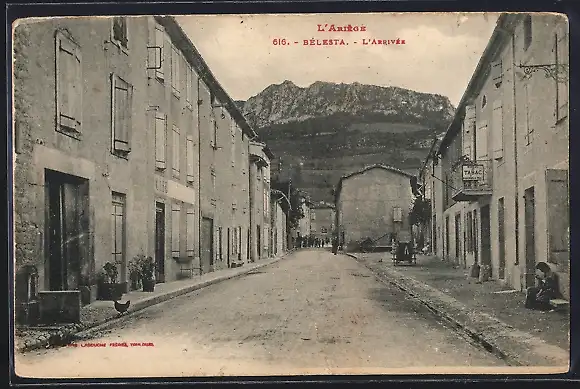 AK Bélesta, L`Arrivée avec vue sur la montagne en arrière-plan