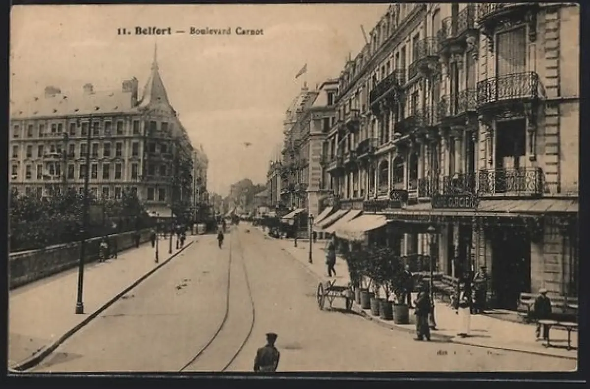 AK Belfort, Boulevard Carnot avec bâtiments et passants