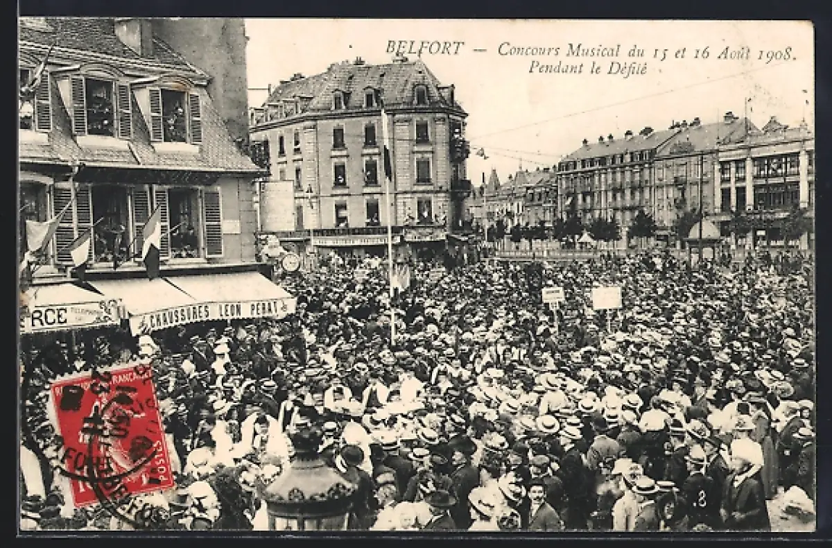 AK Belfort, Concours Musical du 15 et 16 Août 1908, Pendant le Défilé