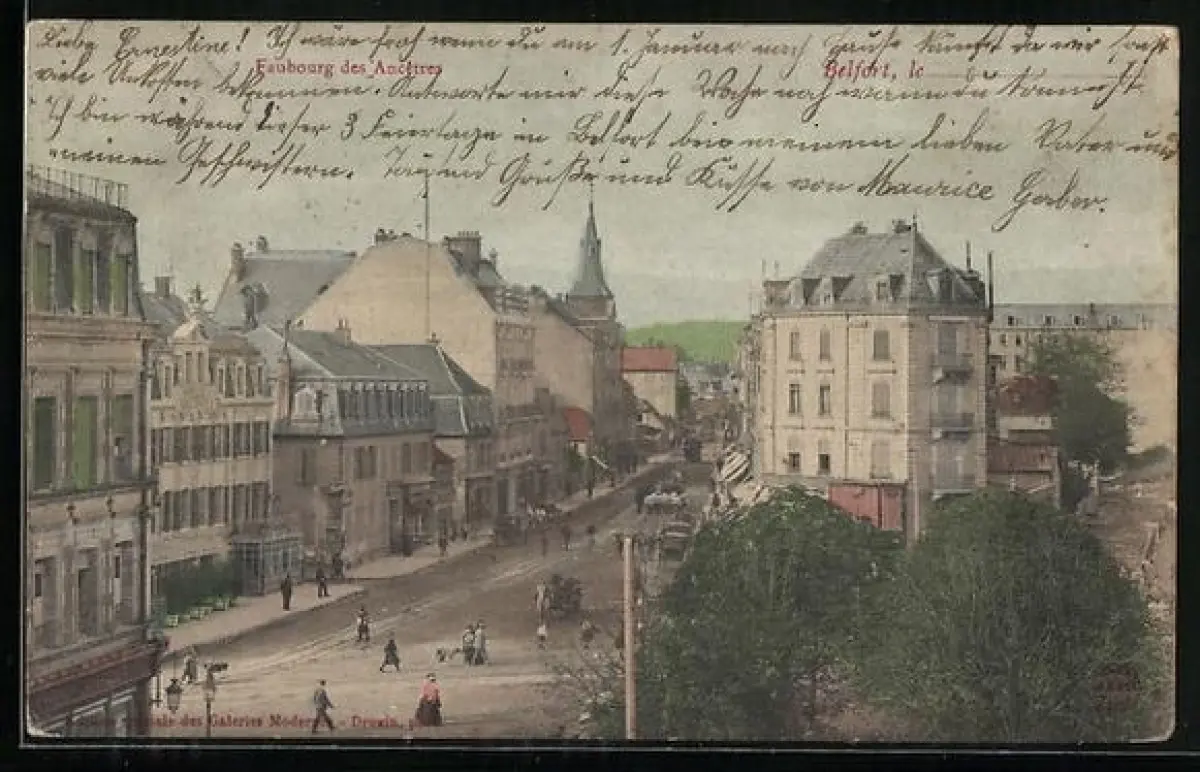 AK Belfort, Faubourg des Ancêtres, Strassenansicht