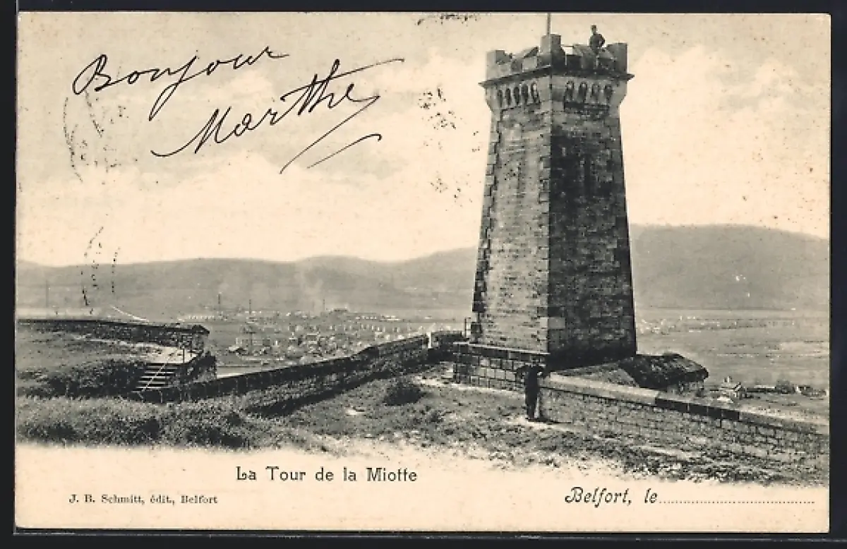 AK Belfort, La Tour de la Miotte avec vue sur la campagne environnante
