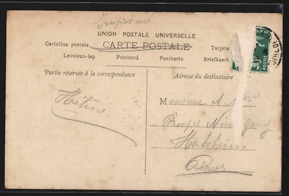 alte Ansichtskarte, gelaufen, Briefmarke entfernt, Eckknick oben links, guter Zustand