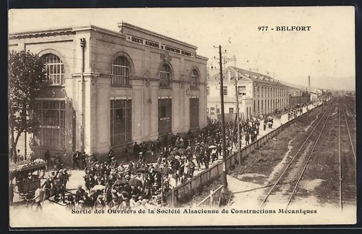 AK Belfort, Sortie des Ouvriers de la Société Alsacienne de Constructions Mécaniques