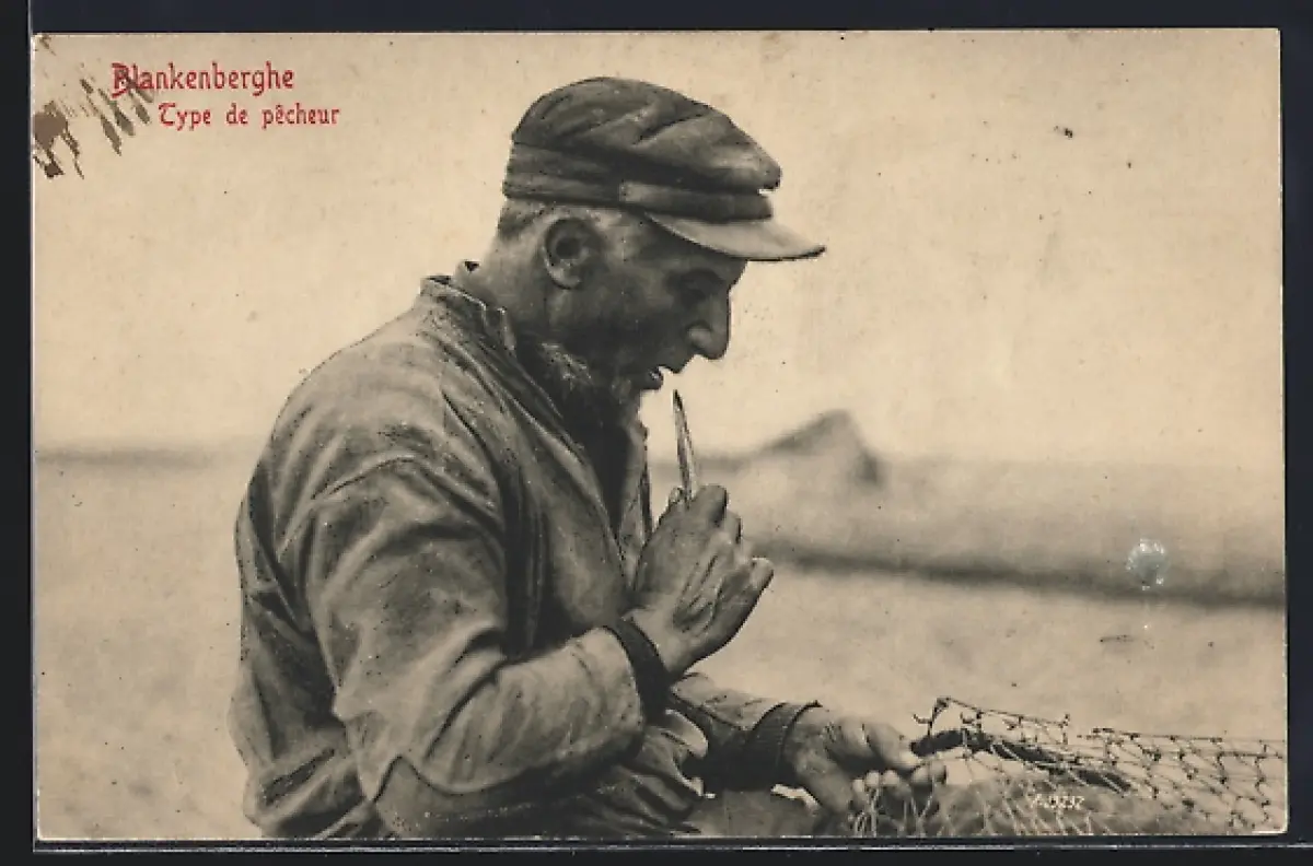 AK Belgique, Type de pêcheur du Littoral Belge, Fischer mit Fischernetz