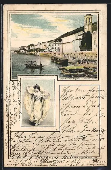 AK Belgirate /Lago Maggiore, Wasserpartie mit Booten und Glockenturm