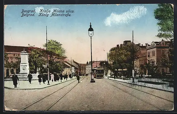 AK Belgrad, König-Milan-Strasse, Strassenbahn